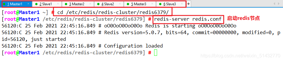 cd /etc/redis/redis-cluster/redis6379/ redis-server redis.conf