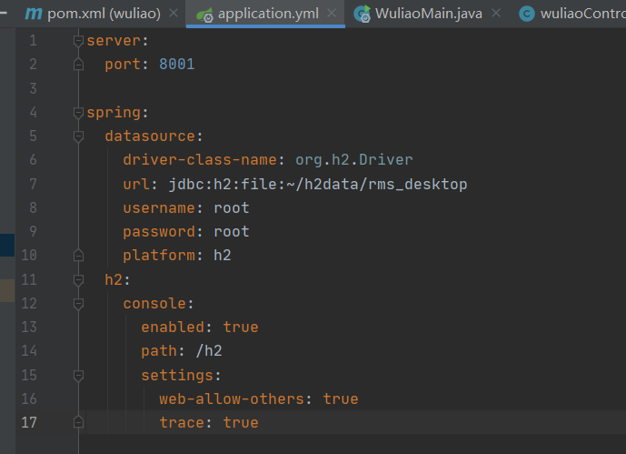 然后再application.yml中配置h2数据库
