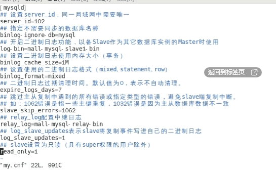 7.进入 /mydata/mysql-slave/conf目录下新建my.cnf并添加以下内容