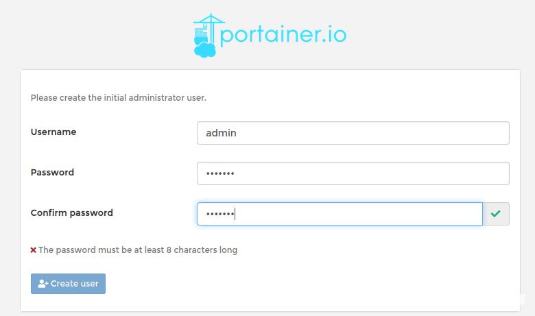 然后在浏览器打开对应地址,就会发现成功运行了。第一次运行的时候需要设置账号,然后选择要管理的Docker主机。