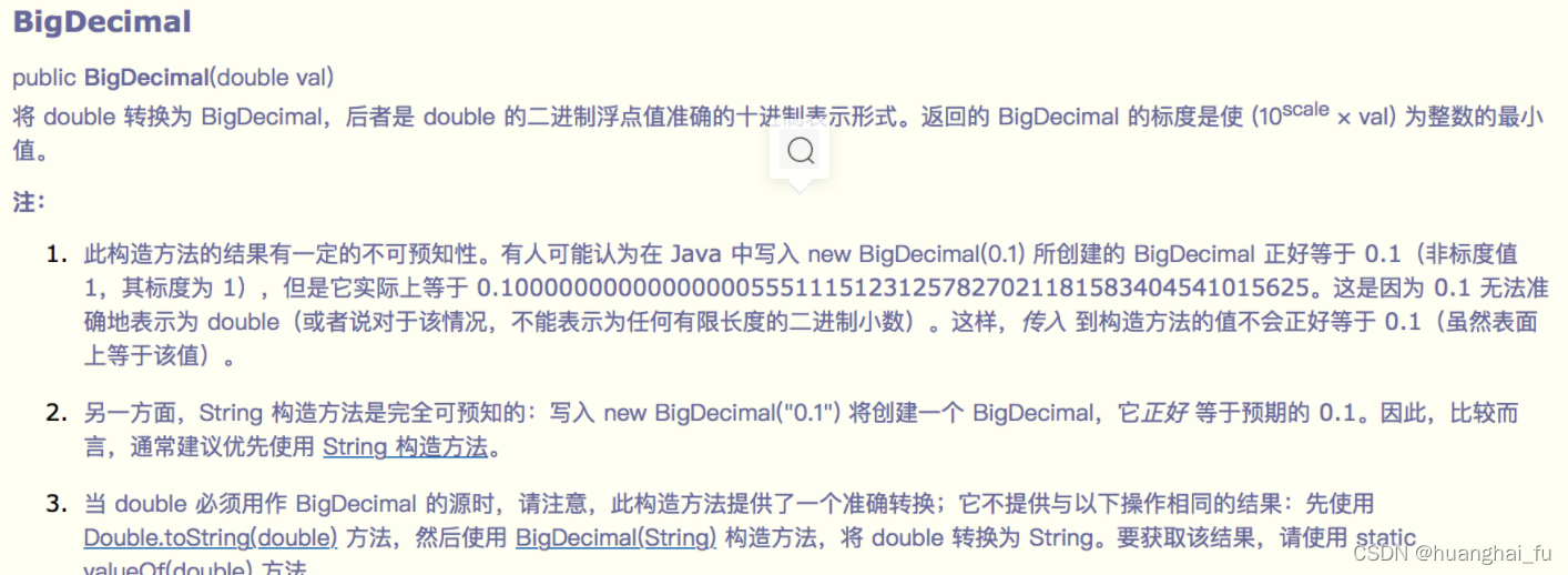 BigDecimal(double val):将双精度浮点数转换为 BigDecimal。