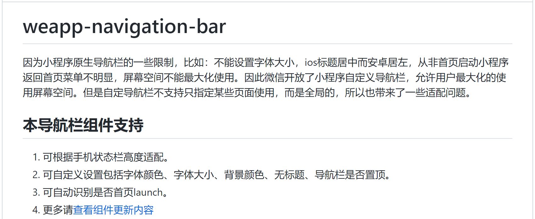 自定义导航栏使用weapp-navigation-bar组件,网址:https://github.com/mulook/weapp-navigation-bar
