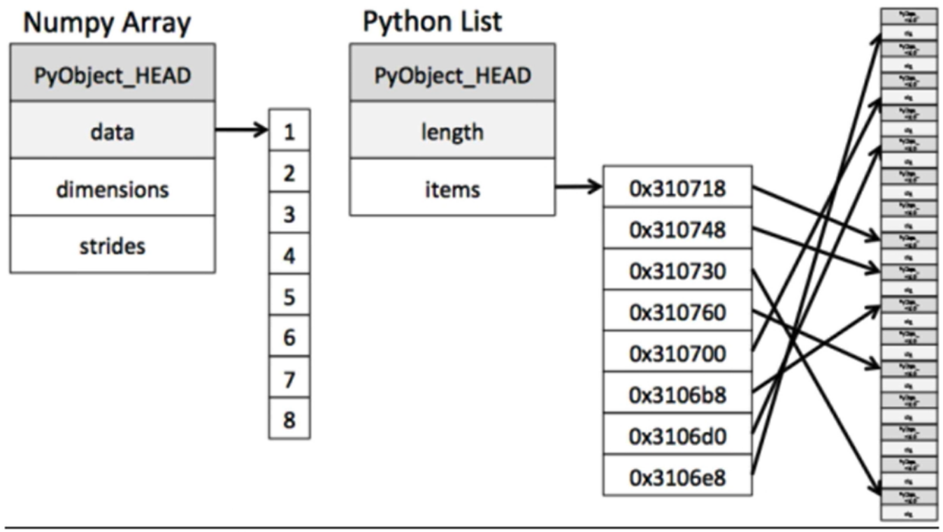 ndarray到底跟原生python列表有什么不同呢,请看一张图: