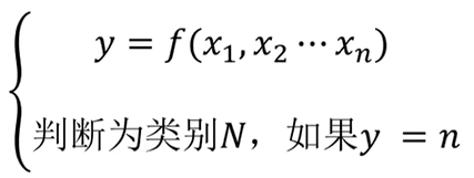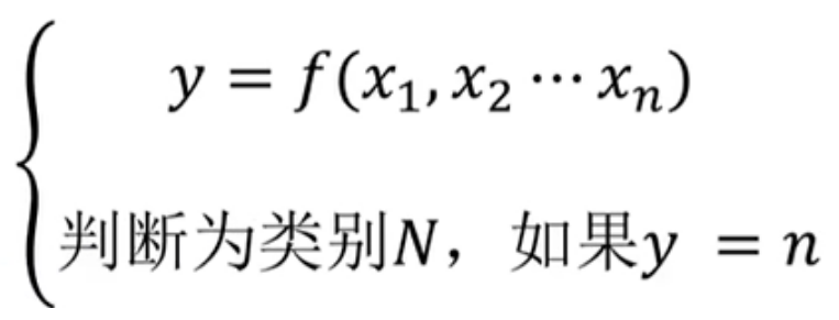 其中x1,x2,...xn表示特征,再根据y的值来判断属于哪一类。