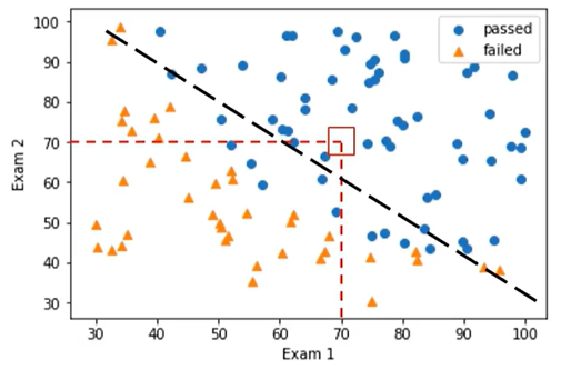 小明,Exam1和Exam2都是70分,是否会通过Exam3?