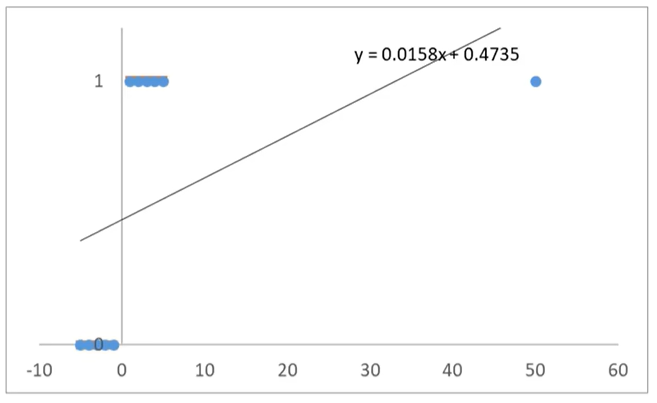 发现用线性回归模型也可以预测分类任务。但是有个非常大的局限性:当样本量变大以后,准确率会下降。