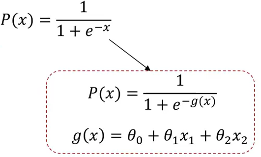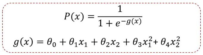 如果是一维的话即g(x)=x,则用逻辑回归方程sigmoid来进行二分类。如果是二维的话即g(x)=θ0 + θ1 X1 + θ2 X2 ,则用梯度下降算法求解边界函数,此时边界函数分一阶还是二阶,一阶边界函数是直线,二阶边界函数是曲线。