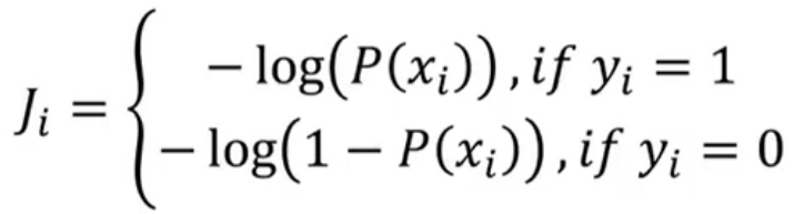 当yi=0(即真实的分类为0)时,损失函数是-log(1-P(xi))
