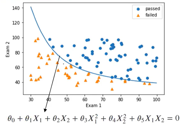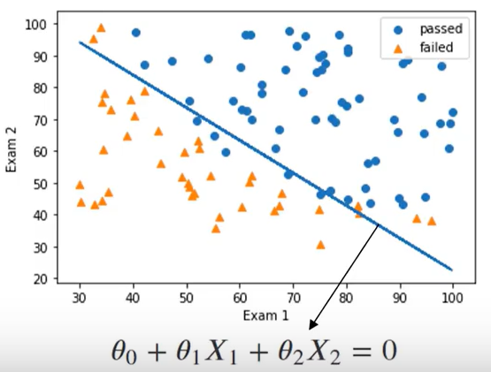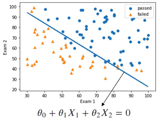 边界函数:θ0 + θ1x1 + θ2 x2 = 0