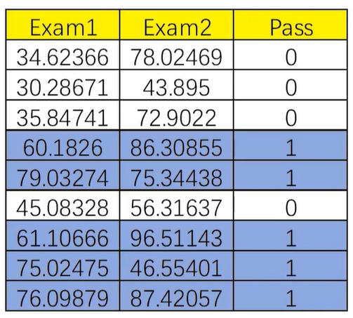 第四步:赋值数据,得到除pass的数据和仅pass以及exam1和exam2的数据