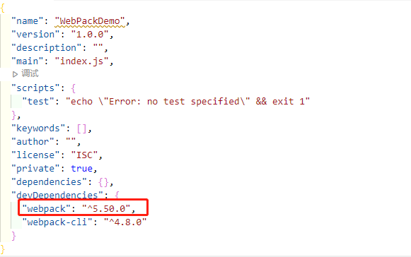 安装完后,可以在package.json中,devDependencies中有了webpack配置,4.8.0版本。