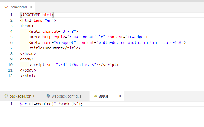 新建一个index.html,引用脚本“./dist/bundle.js”