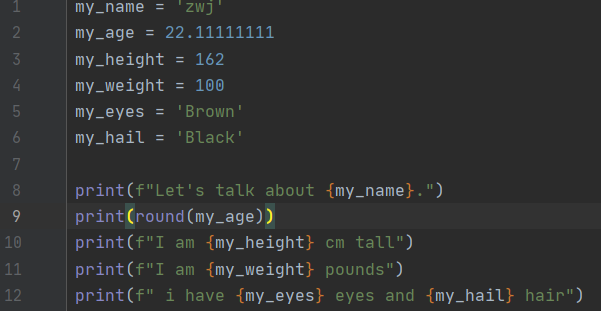 创建嵌入变量内容的字符串:print(f"字符串{变量}"),f是format格式化的意思