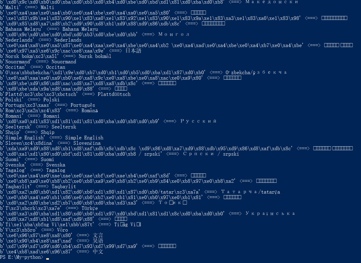 ·next_lang变量是一个字符串,要获取原始字节串,必须调用.encode()来编码字符串,此时需要把编码的方式和处理错误的方式传入传入encode()函数