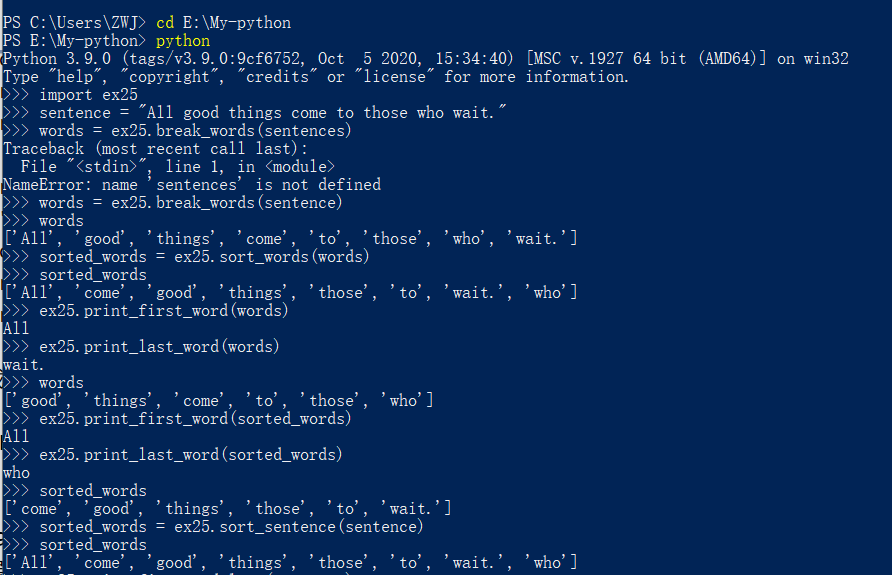 习题25:更多更多的练习