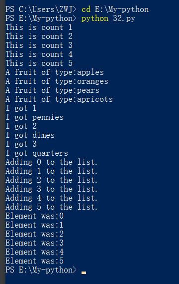 print(f"Element was:{i}")