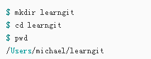 cd /learngit,执行git init命令,会出现