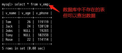 现在我们创建一个简单的视图,名为 v_emp,包含v_name,v_age,v_phone三个列: