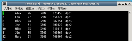 使用命令 sudo vim /var/lib/mysql-files/SQL6/in.txt 查看 in.txt 文件中的内容:
