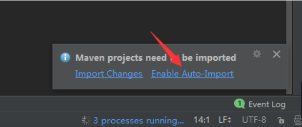 3.进入项目界面后,选择Maven自动导入包,如下图,最后等待初始化完成。