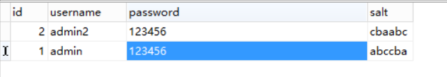 然后根据password和salt字段结合进行摘要处理,存在数据库表中的password字段,这样一来,原来明文都是123456生成的密文就不一样了