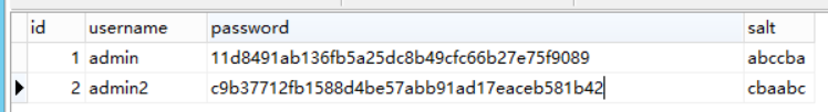 - 多建一对数据,将表中的salt字段输入cbaabc,然后和原来的明文密码123456结合,再进行SHA1加密