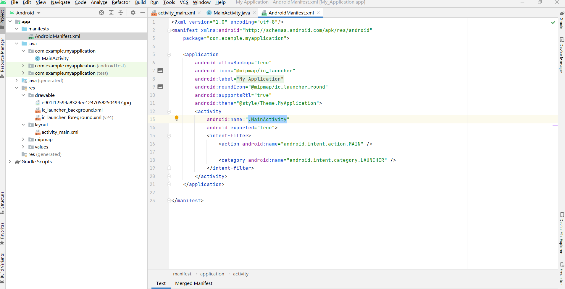 2、怎么让新建的.java文件运行显示,那就要找到manifests文件中的Androidmanifests.xml修改