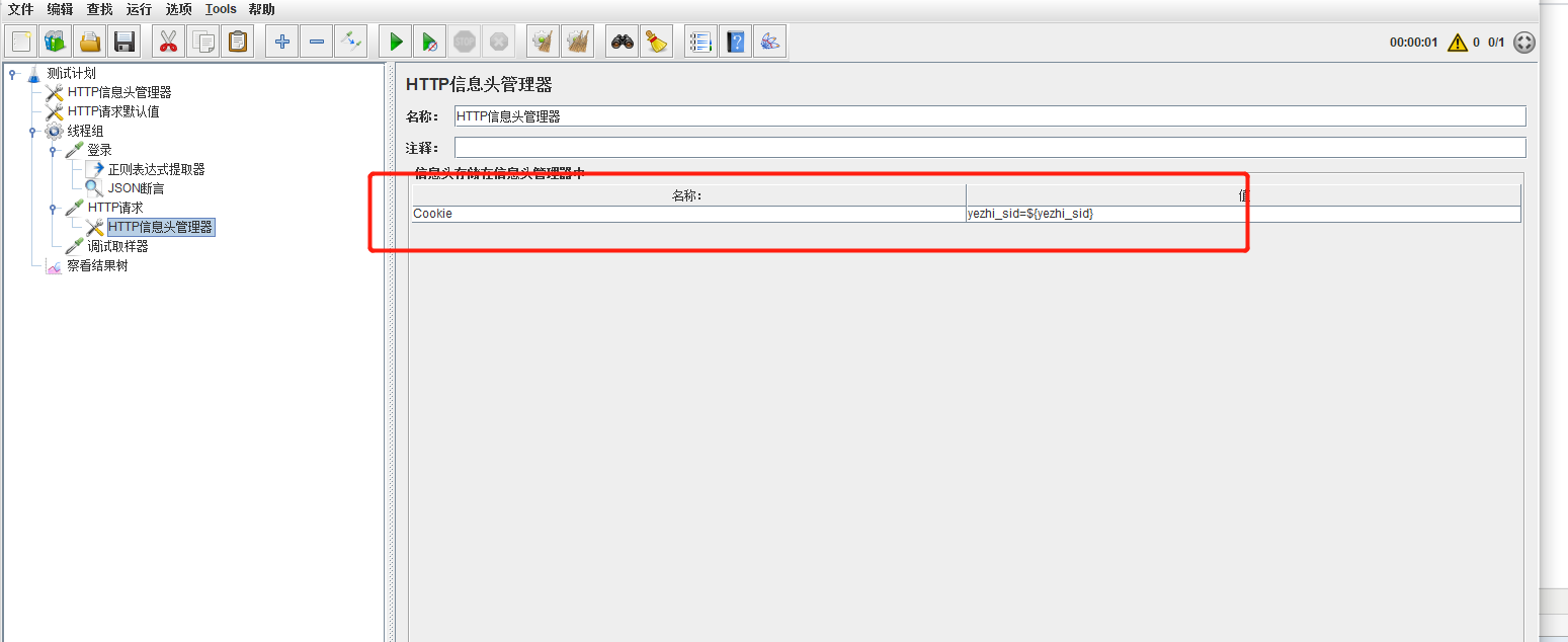 然后在信息头管理中添加Cookie,最后点击运行