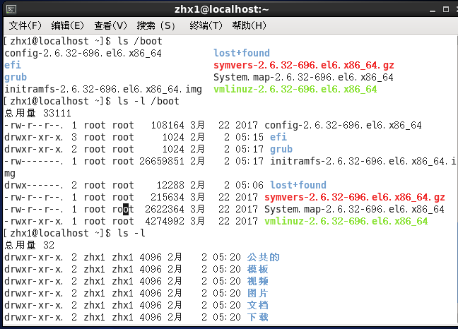 -a显示隐藏文件(点开头的都是隐藏文件)