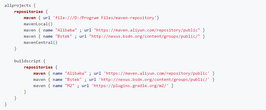 定义repositories 中 jar 包的获取顺序,优先使用本地maven仓库,在maven切换到gradle很方便。非常使用,重点!!!