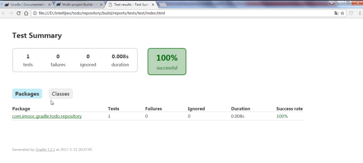 在自动化测试上,maven和gradlle没有太大差别,只要把测试代码写到指定的目录,那么构建工具就可以自动发现测试用例自动执行。gradle更优秀的是在build之后到reports目录下,对测试结果有index.html,使用页面形式对测试的结果进行可视化的展示。