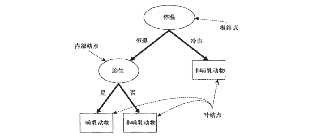 叶子节点:有进边,没有出边,每个叶子节点都是一个类别标签。