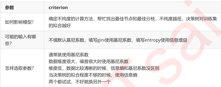 不纯度 : 用来衡量决策树找到最佳节点和最佳分支的指标 ,不纯度越低,决策树对训练集的拟合性也好