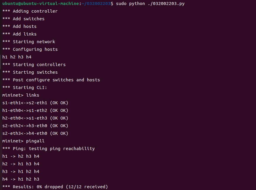 3. 在2 b)的基础上,在Mininet交互界面上新增1台主机并且连接到交换机上,再测试新拓扑的连通性。