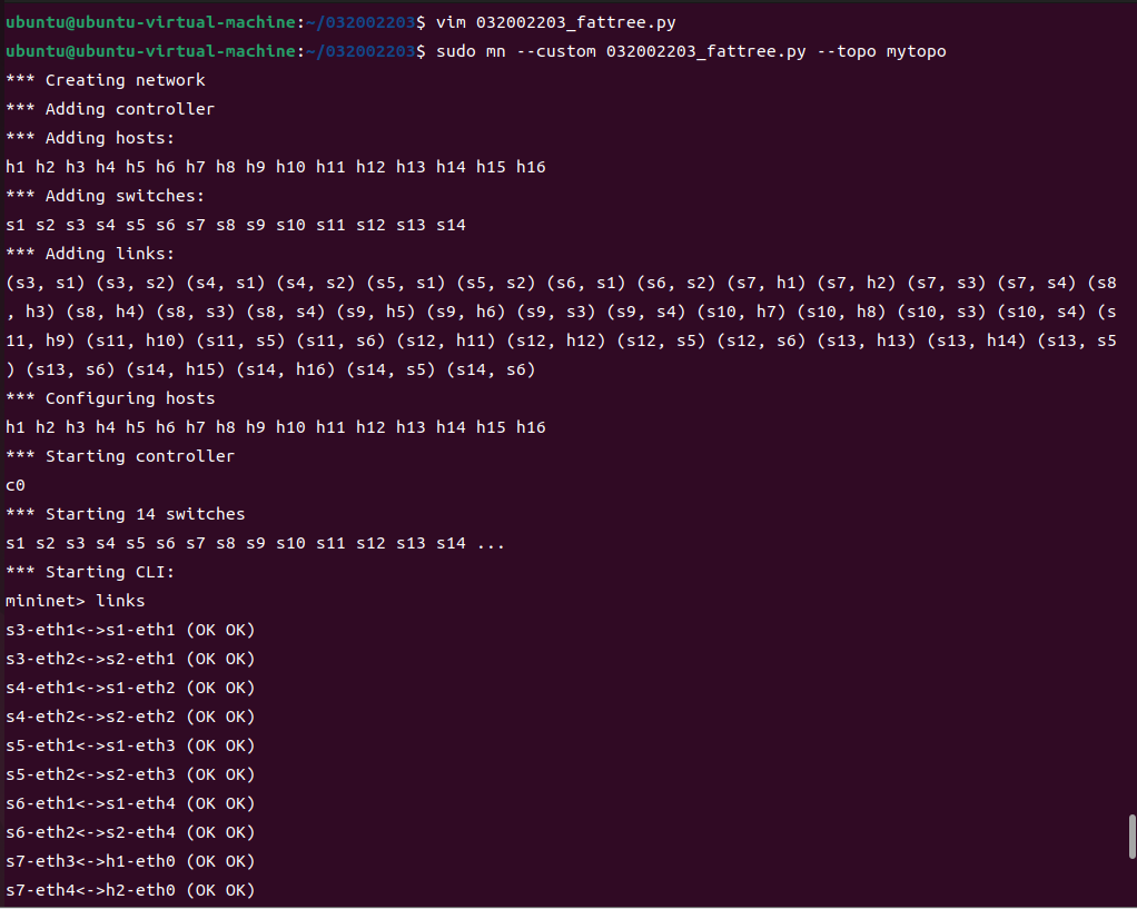 使用Mininet可视化工具,生成下图所示的拓扑,并保存拓扑文件名为学号.py