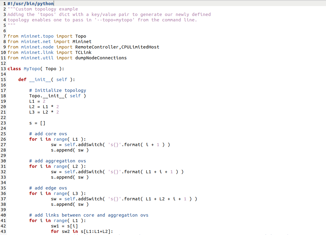 4. 编辑(一)中第1步保存的Python脚本,添加如下网络性能限制,生成拓扑: