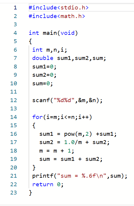 本题要求对两个正整数m和n(m≤n)编写程序,计算序列和m的平方+1/m+(m+1)的平方 +1/(m+1)+⋯+n的平方+1/n。