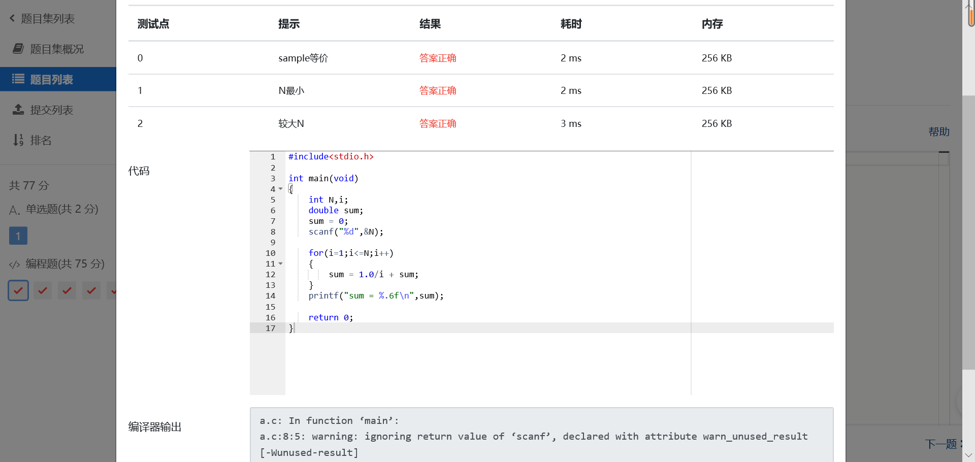 输出格式:在一行中输出部分和的值,结果保留三位小数。