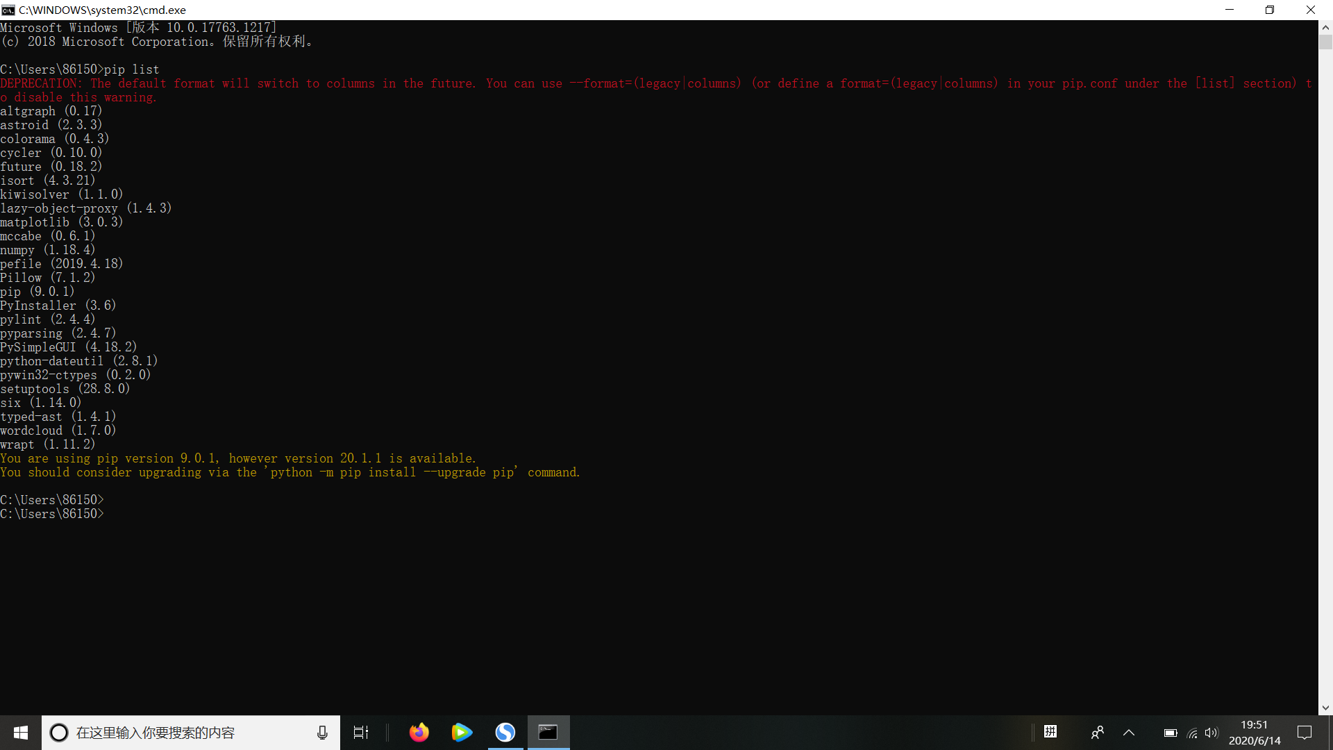 pip list 列出当前系统已经安装的第三方库