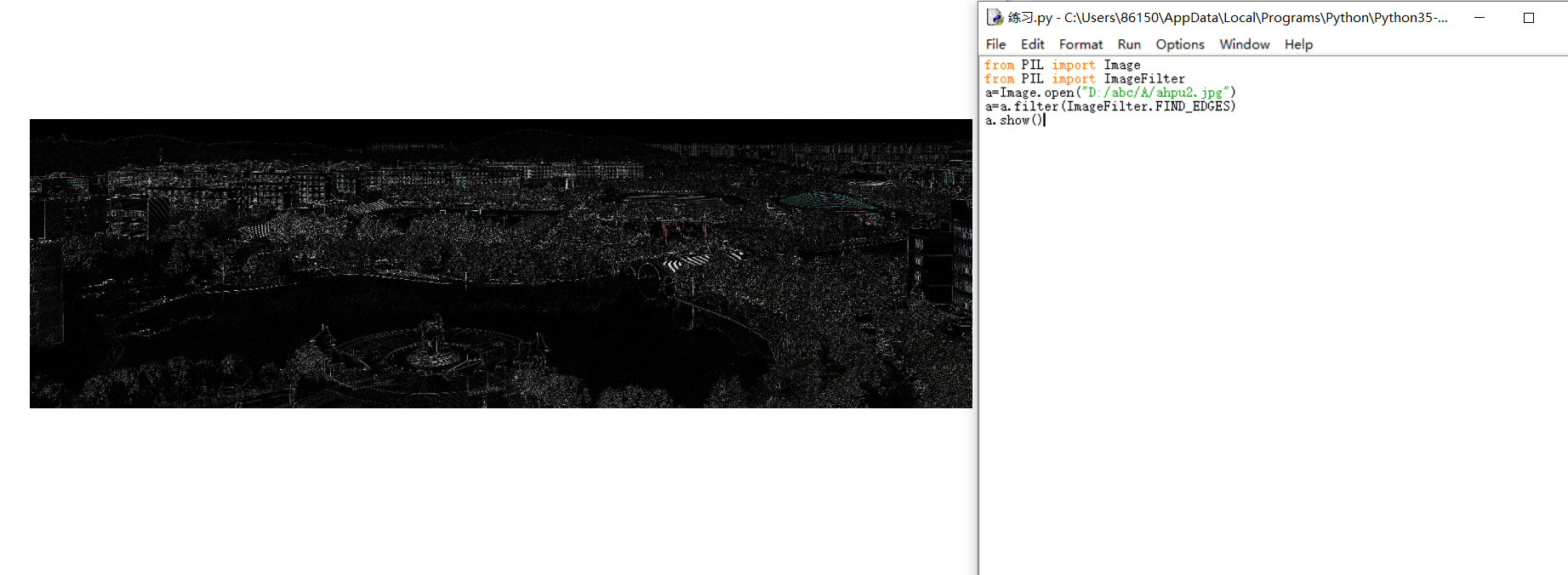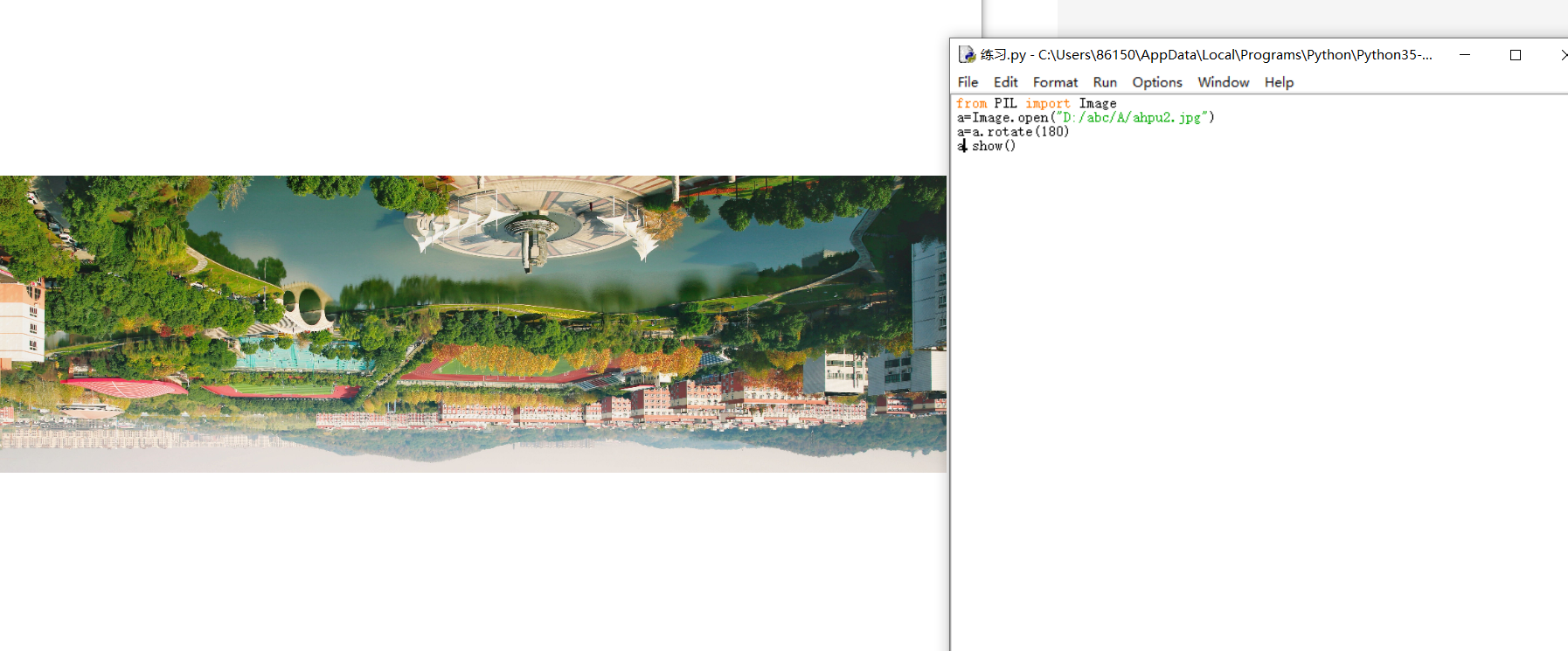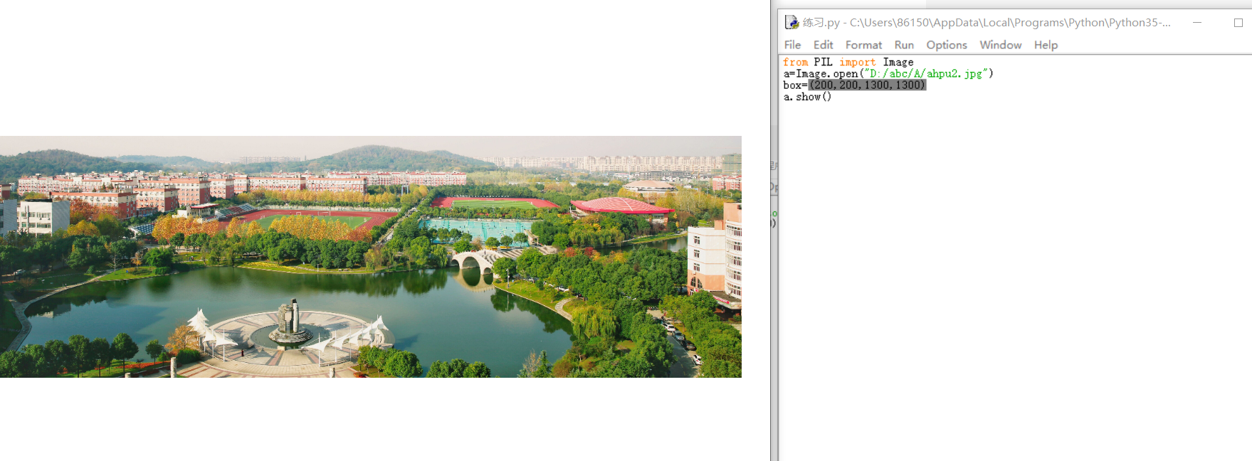 5.采用pip安装图像处理库,实现ahpu.jpg图像的处理,实现反转,剪切,边缘提取,平滑等效果。