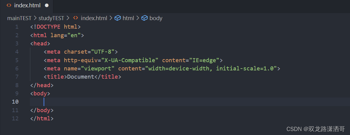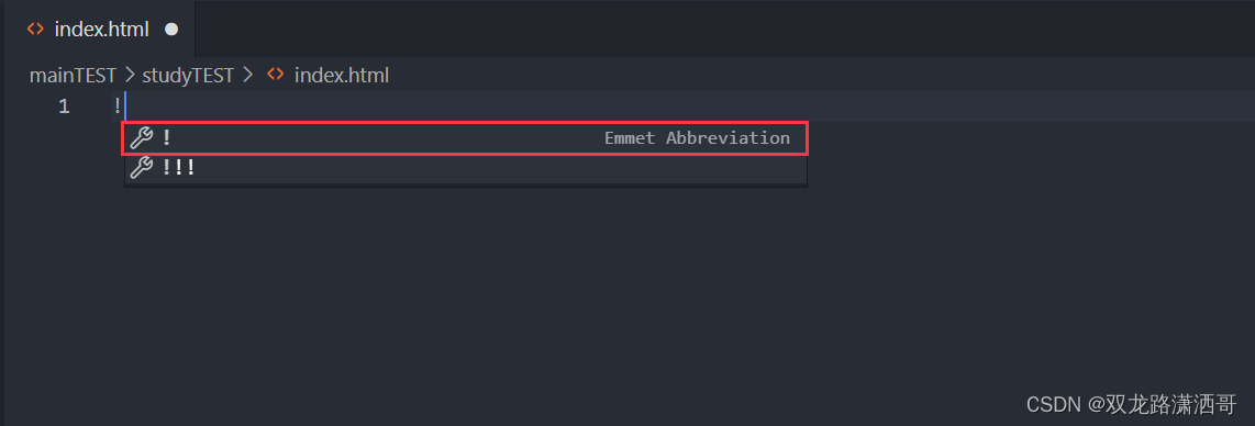 新建一个 .html 文档后打上一个感叹号选择快捷操作第一个即可。