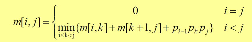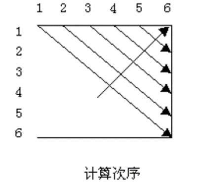 从递推公式中可以看出算m[i,j]需要事先知道m[i,k]还有m[k+1,j],而无论是m[i,k]还是m[k+1,j]的长度都比m[i,j]短,所以计算整个m数组的顺序应该是从矩阵链长度短的推到长度长的,最后得到结果m[1][n]。