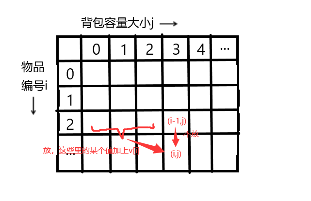 从下标为 0~i 的个物体中任意取后放入容量为 j 的背包中的最大价值总和。