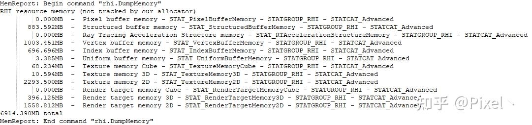 ②.显存,占用6.75GB。其中VirtualPhysicalTexture占用1282MB、Lumen占用720MB、Nanite占用690MB、Shadow占用638MB、DistanceField占用151MB。