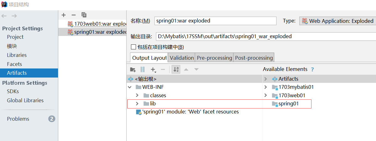 当我们把之前的所有引入到新的spring01模块的时候,可能会报错,此时的原因可能是lib未引入。