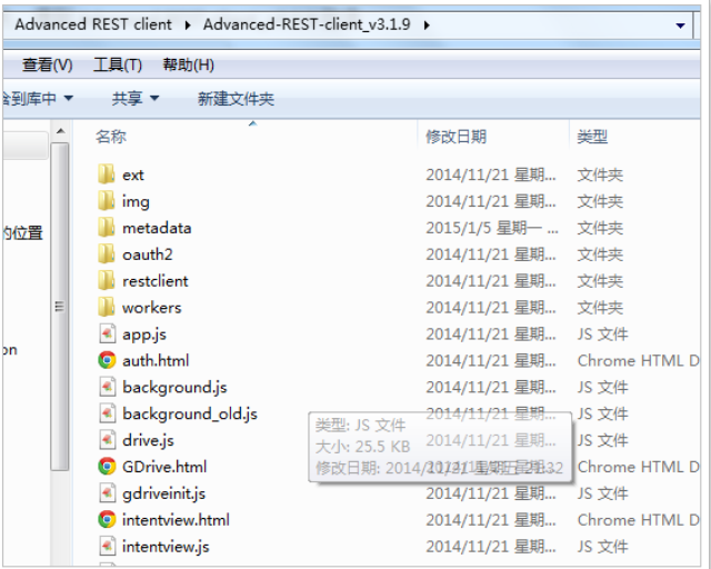 1、解压Advanced-REST-client_v3.1.9.zip到当前文件夹,得到Advanced-REST-client_v3.1.9目录