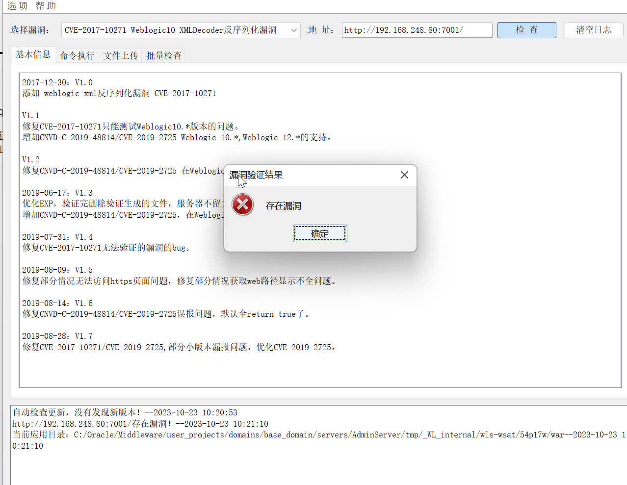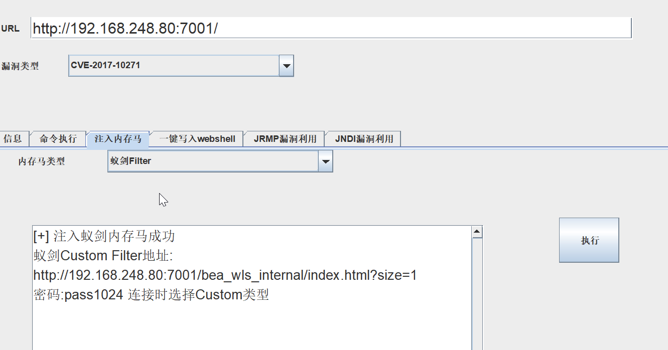 说完特征后直接就可以注入木马了,我这里使用我自己的工具注入内存马: