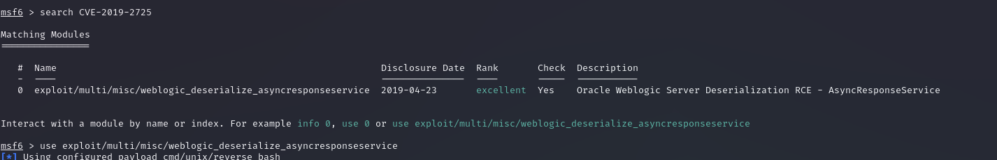 发现存在此漏洞,直接开启msf搜索此漏洞