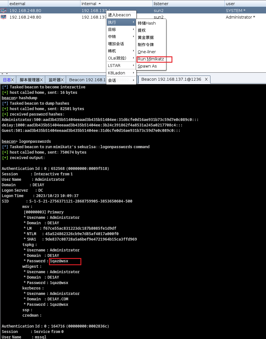 总算拿下,开启后渗透过程,使用我们的CS4,令其上线