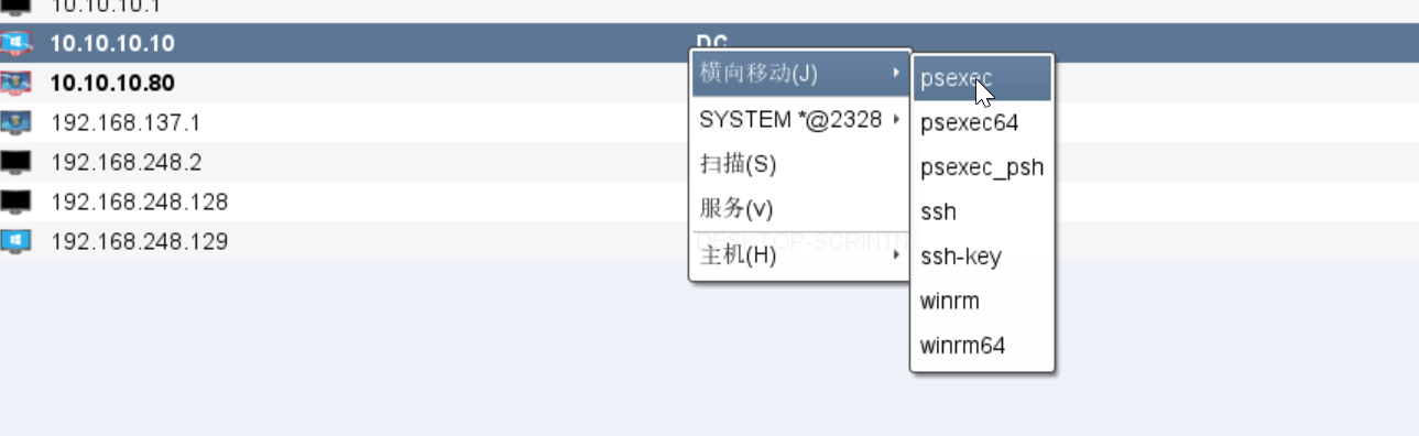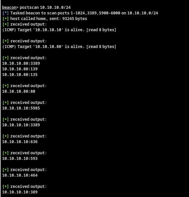 portscan 10.10.10.0/24扫描一下内网开放的端口